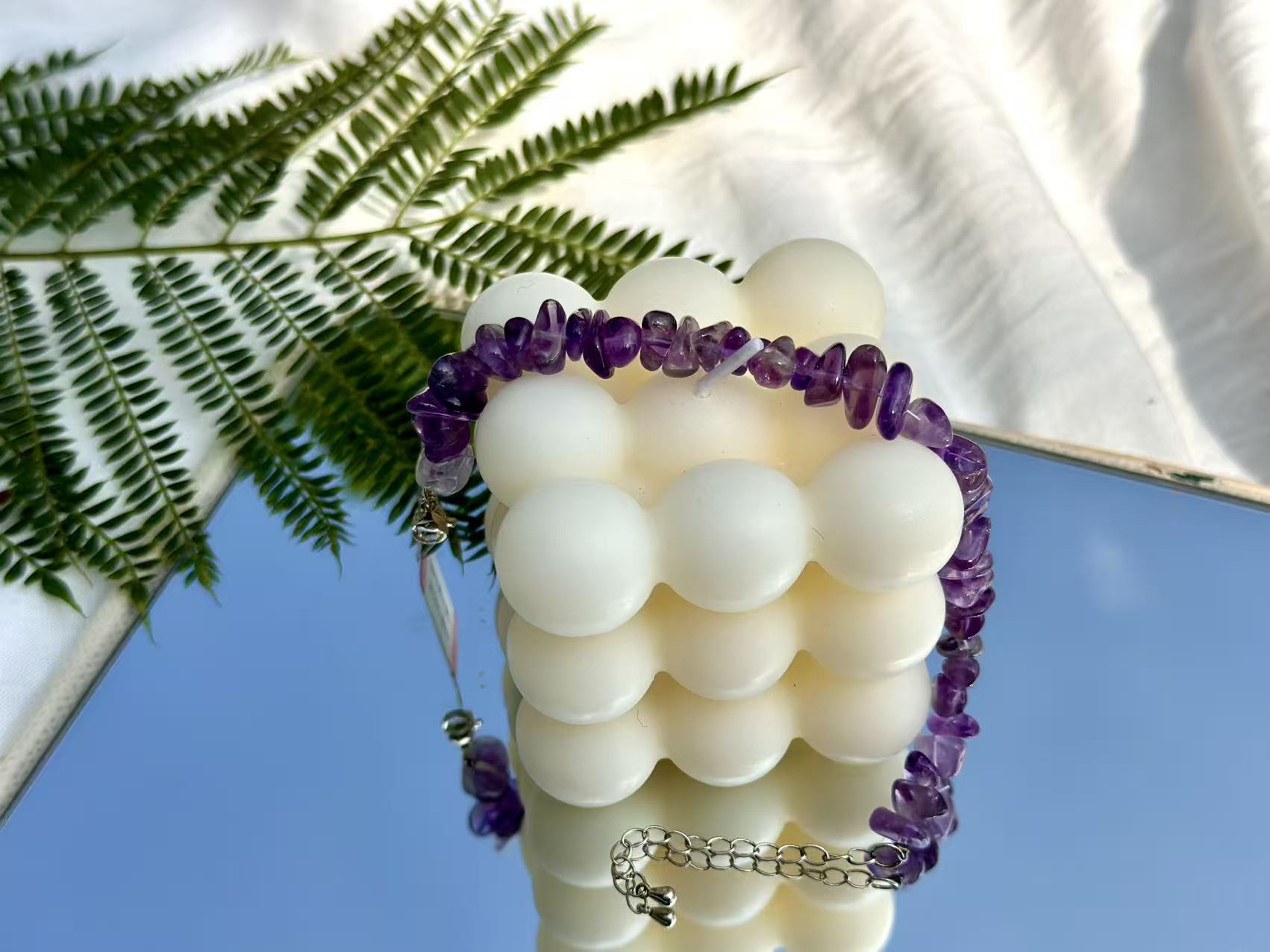Hold the bracelet in your hands before sleep or meditation. Close your eyes and set a clear intention, such as “I open my mind to intuitive guidance,” or “My mind is calm and clear.” The deep purple color is naturally soothing to the third eye.